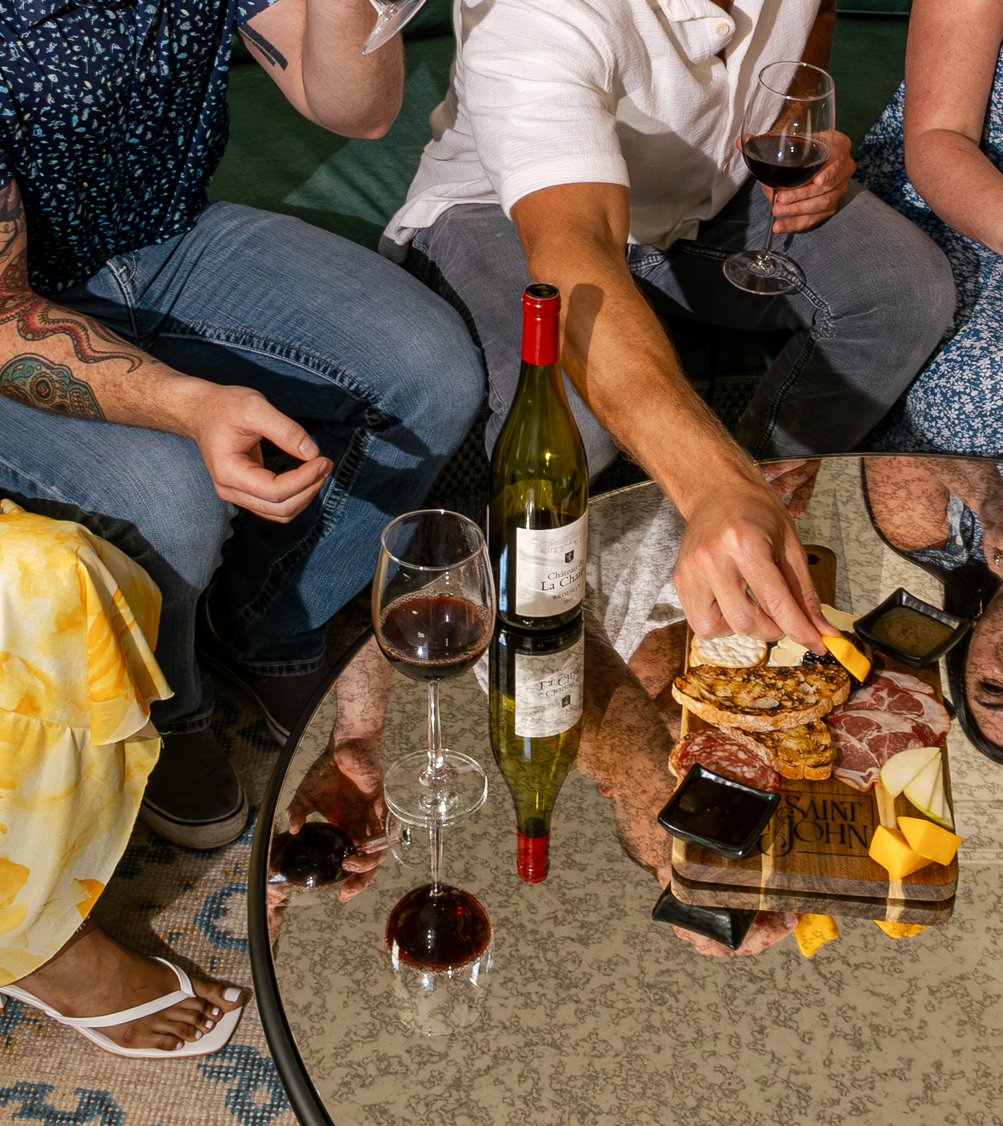 Partnering with Saint John Restaurant, indulge in a beautifully arranged board featuring artisan meats, cheeses, fruit, and house-made accompaniments — paired perfectly with a bottle of wine.